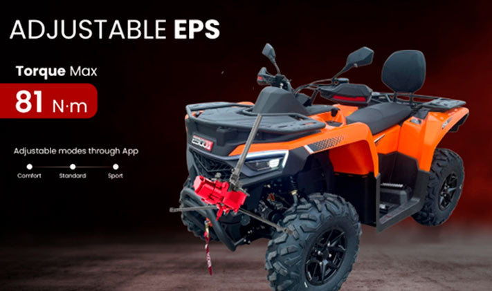 - Didesnis saugumas – lengviau kontroliuojamas vairas padeda tiksliau valdyti keturratį įvairiose situacijose.